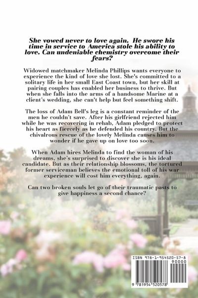She vowed never to love again. His career in the Marines crushed his ability to love. Can undeniable chemistry and a leap of faith overcome their past? Widowed matchmaker Melinda Phillips wants everyone to find the kind of love she once had. She's now committed to a solitary life in her small seaside town, and her skill at pairing couples has enabled her business to thrive. But when she trips into the arms of a handsome Marine at a client's wedding, she can't help but know something has shifted in her life. Even after a harrowing injury cost him his career in the military, Adam Bell is a Marine through and through. But the loss of his leg is a constant reminder of the men he couldn't save on the battlefield, and the subsequent loss of his girlfriend as he worked to adapt to his new body left him pledging to protect his heart as fiercely as he had once defended his country. But the chivalrous interlude with the lovely Melinda makes him wonder, if he gave up on love too soon. When Adam hires Melinda to find the woman of his dreams and as their friendship blossoms, she's surprised to discover she is his ideal match-and she's rarely wrong. The tortured Marine believes the emotional toll of his war experience will cost him everything once again. Can two broken souls let go of their traumatic pasts to give love a second chance?