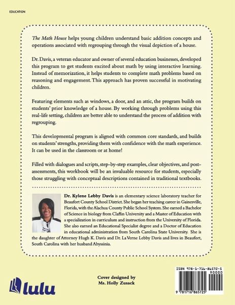 The Math House helps young children understand basic addition concepts and operations associated with regrouping through the visual depiction of a house. Dr. Davis, a veteran educator and owner of several education businesses, developed this program to get students excited about math by using interactive learning. Instead of memorization, it helps students to complete math problems based on reasoning and engagement. This approach has proven successful in motivating children. Featuring elements such as windows, a door, and an attic, the program builds on students' prior knowledge of a house. By working through problems using this real-life setting, children are better able to understand the process of addition with regrouping. This developmental program is aligned with common core standards, and builds on students' strengths, providing them with confidence with the math experience. It can be used in the classroom or at home! Filled with dialogues and scripts, step-by-step examples, clear objectives, and post-assessments, this workbook will be an invaluable resource for students, especially those struggling with conceptual descriptions contained in traditional textbooks.