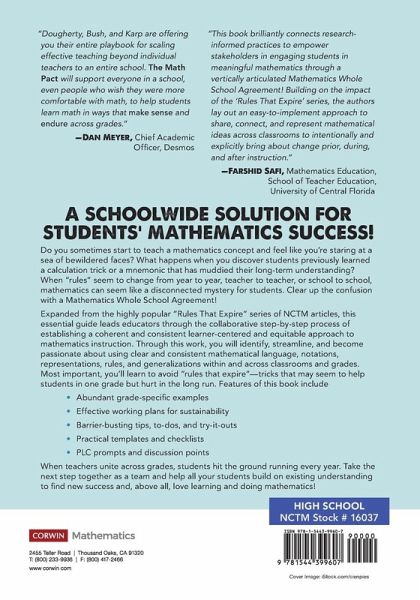A schoolwide solution for mathematics success! When "rules" seem to change from year to year, mathematics can seem like a disconnected mystery for students. Clear up the confusion with a Mathematics Whole-School Agreement! Expanded from the highly popular "Rules that Expire" series of NCTM articles, this essential guide leads educators through the collaborative step-by-step process of establishing a coherent and consistent learner-centered and equitable approach to mathematics instruction. You’ll learn to avoid "rules that expire"—tricks that may seem to help students in one grade but hurt in…mehr