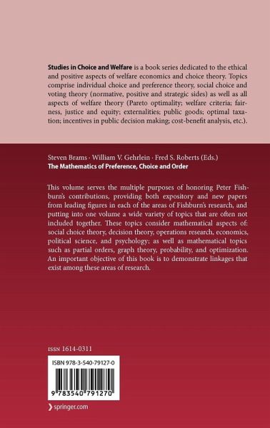 This volume serves the multiple purposes of honoring Peter Fishburn's contributions, providing both expository and new papers from leading figures in each of the areas of Fishburn's research, and putting into one volume a wide variety of topics that are often not included together. These topics consider mathematical aspects of: social choice theory, decision theory, operations research, economics, political science, and psychology; as well as mathematical topics such as partial orders, graph theory, probability, and optimization. An important objective of this book is to demonstrate linkages that exist among these areas of research.
