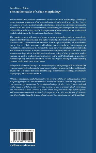 "This book provides a useful perspective on the state of the art with respect to urban morphology in general and mathematics as tools and frames to disentangle the ideas that pervade arguments about form and function in particular. There is much to absorb in the pages that follow and thereare many pointers to ways in which these ideas can be linked to related theories of cities, urban design and urban policy analysis as well as new movements such as the role of computation in cities and the idea of the smart city. Much food for thought. Read on, digest, enjoy." From the foreword by Michael Batty