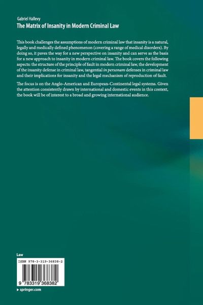 The book covers the following aspects: the structure of the principle of fault in modern criminal law, the development of the insanity defense in criminal law, tangential in personam defenses in criminal law and their implications for insanity and the legal mechanism of reproduction of fault.