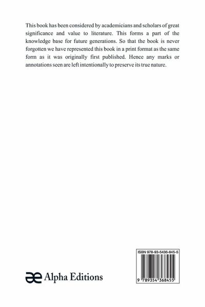 This book has been considered by academicians and scholars of great significance and value to literature. This forms a part of the knowledge base for future generations. So that the book is never forgotten we have represented this book in a print format as the same form as it was originally first published. Hence any marks or annotations seen are left intentionally to preserve its true nature.