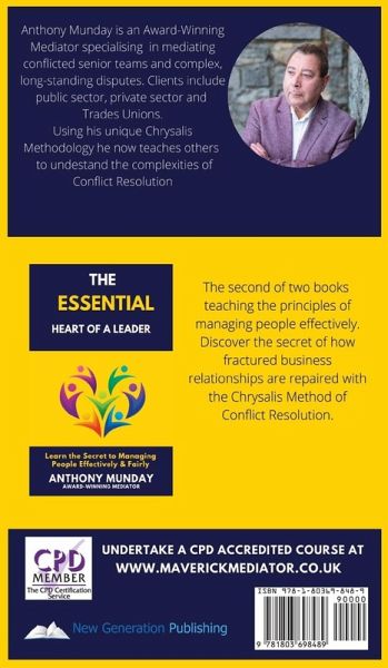 The second of two books teaching the principles of managing people effectively. Discover the secret of how fractured business relationships are repaired with the Chrysalis Method of Conflict Resolution. Anthony Munday is an award-winning mediator specialising in mediating conflicted senior teams and complex, long-standing disputes. Clients include public sector, private sector and Trade Unions. Using his unique Chrysalis Methodology he now teaches others to understand the complexities of conflict resolution.