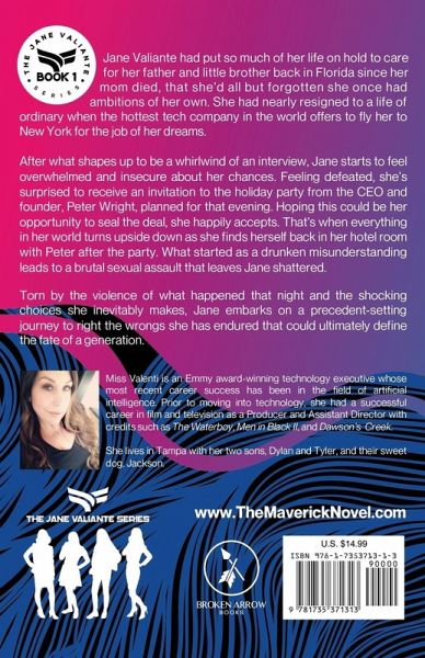 Jane Valiante had put so much of her life on hold to care for her father and little brother back in Florida since her mom died, that she'd all but forgotten she once had ambitions of her own. She had nearly resigned to a life of ordinary when the hottest tech company in the world offers to fly her to New York for the job of her dreams. After what shapes up to be a whirlwind of an interview, Jane starts to feel overwhelmed and insecure about her chances. Feeling defeated, she's surprised to receive an invitation to the holiday party from the CEO and Founder, Peter Wright, planned for that evening. Hoping this could be her opportunity to seal the deal, she happily accepts. That's when everything in her world turns upside down as she finds herself back in her hotel room with Peter after the party. What started as a drunken misunderstanding leads to a brutal sexual assault that leaves Jane shattered. Torn by the violence of what happened that night and the shocking choices she inevitably makes, Jane embarks on a precedent-setting journey to right the wrongs she has endured that could ultimately define the fate of a generation.