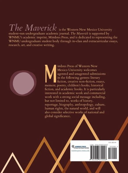 The Maverick, Volume One, is a student-run undergraduate academic journal of Western New Mexico University. The Maverick is dedicated to representing the WNMU undergraduate student body through the online publication of in-class as well as extracurricular essays, research, art, and creative writing.