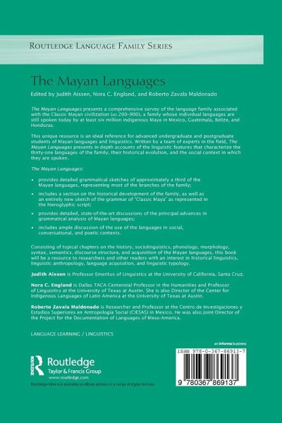 Consisting of topical chapters on the history, sociolinguistics, phonology, morphology, syntax, semantics, discourse structure, and acquisition of the Mayan languages, this book will be a resource for researchers and other readers with an interest in historical linguistics, linguistic anthropology, language acquisition, and linguistic typology.