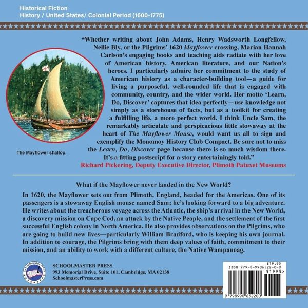 This is a 57-page historical fiction book with a fictional stowaway mouse telling the story of the Pilgrims' voyage to America and their settlement of Plimoth in 1620 and 1621. The book has quotes from Governor Bradford's journal, historical fine art depicting the Pilgrims, and new art on the front and back covers and throughout the text. The book includes places to visit, advice on journal writing, and suggested student activities. The story of the English Pilgrims' trip on the Mayflower ship to find their religious freedom in Massachusetts and to found Plymouth, America's hometown, in 1620…mehr
