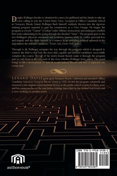 Douglas Bollinger decides to abandon his career, his girlfriend and his family to take up a new calling to join the United States Navy. Accepted at Officer Candidate School in Newport, Rhode Island, Bollinger finds himself suddenly thrown into the rigorous training program required to gain his commission as a Navy Ensign. He begins the program as a lowly "Cumin" (Civilian Under Military Instruction) and undergoes a hellish first week culminating by his going through the dreaded "Maze". The program puts to the test Bollinger's physical, emotional and academic stamina while he suffers personal loss and tragedy and also finds himself as a witness to an unfolding political upheaval in the days before the military's infamous "Don't Ask, Don't Tell" policy. Through it all, Bollinger navigates his way through the program which is designed to winnow the field so that only the most able, capable and talented candidates successfully complete the course. Not all of his newly-found friends make it through the program and we only learn at the very end of the story whether Bollinger does, either. This novel brings to life a short period of time in recent military history and how it impacted one young man.