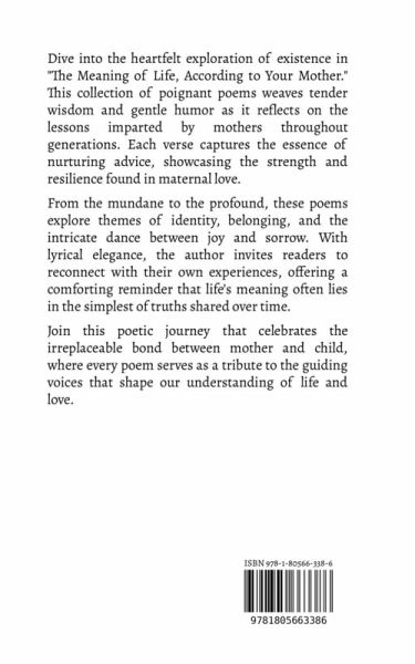 Dive into the heartfelt exploration of existence in "The Meaning of Life, According to Your Mother." This collection of poignant poems weaves tender wisdom and gentle humor as it reflects on the lessons imparted by mothers throughout generations. Each verse captures the essence of nurturing advice, showcasing the strength and resilience found in maternal love. From the mundane to the profound, these poems explore themes of identity, belonging, and the intricate dance between joy and sorrow. With lyrical elegance, the author invites readers to reconnect with their own experiences, offering a comforting reminder that life's meaning often lies in the simplest of truths shared over time. Join this poetic journey that celebrates the irreplaceable bond between mother and child, where every poem serves as a tribute to the guiding voices that shape our understanding of life and love.