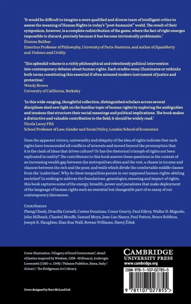 Does the apparent victory, universality and ubiquity of the idea of rights indicate that such rights have transcended all conflicts of interests and moved beyond the presumption that it is the clash of ideas that drives culture? Or has the rhetorical triumph of rights not been replicated in reality? The contributors to this book answer these questions in the context of an increasing wealth gap between the metropolitan elites and the rest, a chasm in income and chances between the rich and the poor, and walls which divide the comfortable middle classes from the 'underclass'. Why do these inequalities persist in our supposed human rights-abiding societies? In seeking to address the foundations, genealogies, meaning and impact of rights, this book captures some of the energy, breadth, power and paradoxes that make deployment of the language of human rights such an essential but changeable part of so many of our contemporary discourses.