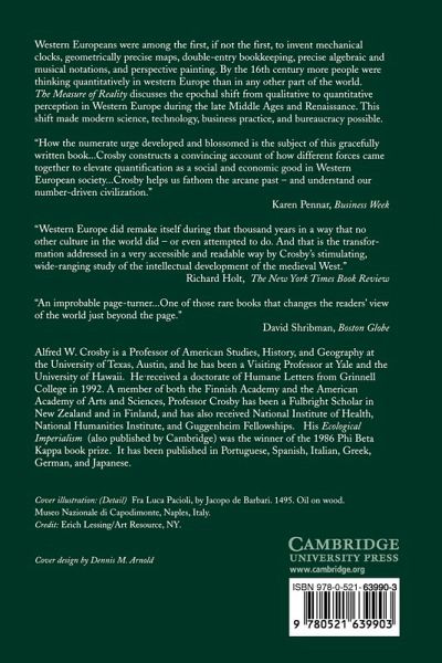 "The Measure of Reality" is an innovative, original exploration of the European mind-set and its impact on history and culture. Written by a bestselling historian, the book appeals to both history students and general readers. With amusing detail and historical anecdote, Alfred Crosby discusses the shift from qualitative to quantitative perception that occurred during the late Middle Ages and Renaissance.