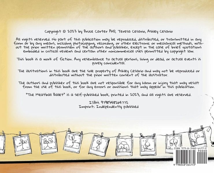 Step into a whimsical world of acceptance, friendship, and bravery with "The Meatball Ballet," a heartwarming children's book co-authored by Teresa Cesario and Bruce Carter, brought to life with captivating illustrations by Ashley Cesario. In the delightful universe of "The Meatball Ballet," meatballs twirl, pirouette, and sashay their way into the hearts of young readers aged 3 to 8. Meet our star, the nameless Meatball, and her best friend, Noodle, a fellow foodie with a passion for dance. In a world where spaghetti is expected to be straight and neat, Meatball and Noodle are about to show everyone that it's okay to be different. Through a story that celebrates body positivity and the beauty of being unique, "The Meatball Ballet" encourages children to embrace their individuality and dance to their own beat. Noodle, with grace and patience, teaches Meatball valuable lessons about the power of friendship, resilience, and never giving up on your dreams, no matter how unconventional they may seem. Join Meatball and Noodle as they embark on an inspiring adventure that challenges stereotypes, defies expectations, and proves that even a meatball can be a star with a little help from a friend. This enchanting tale will leave children giggling, tapping their toes, and believing in the magic of being true to themselves. "The Meatball Ballet" is more than just a story; it's a celebration of diversity, self-acceptance, and the joy of breaking free from conformity. With its charming narrative and enchanting illustrations, this book is destined to become a cherished favorite on every child's bookshelf. Share the magic of "The Meatball Ballet" with your little ones today and let their imaginations soar as they learn the important lesson that it's perfectly wonderful to be exactly who they are, even if you're a meatball named Meatball and your best friend is Noodle.