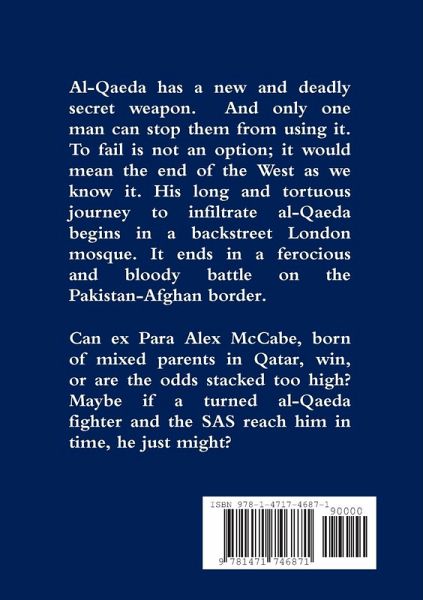 Al-Qaeda has a new and deadly secret weapon. And only one man can stop them from using it. To fail is not an option; it would mean the end of the West as we know it. His long and tortuous journey to infiltrate al-Qaeda begins in a backstreet London mosque. It ends in a ferocious and bloody battle on the Pakistan-Afghan border. Can ex Para Alex McCabe, born of mixed parents in Qatar, win, or are the odds stacked too high? Maybe if a turned al-Qaeda fighter and the SAS reach him in time, he just might?
