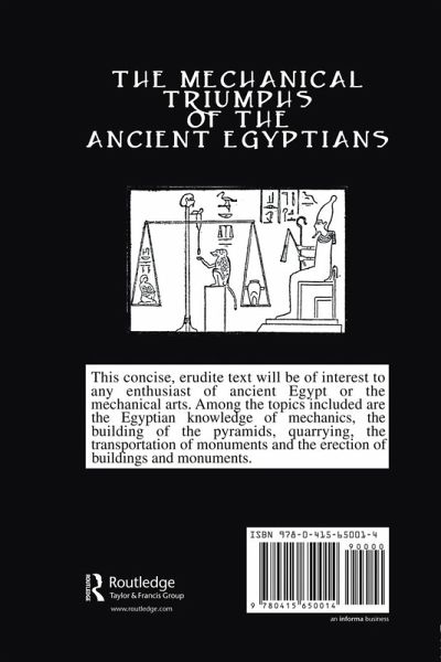 First published in 2005. This concise, erudite text will be of interest to any enthusiast of ancient Egypt or the mechanical arts. Among the topics included are the Egyptian knowledge of mechanics, the building of the pyramids, quarrying, the transportation of monuments and the erection of buildings and monuments.