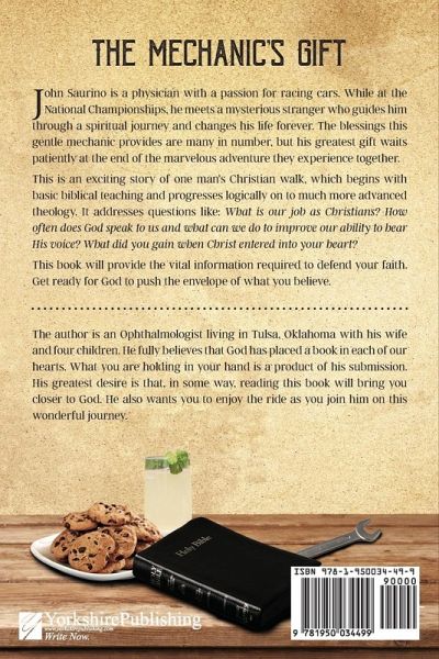 John Saurino is a physician with a passion for racing cars. While at the National Championships, he meets a mysterious stranger who guides him through a spiritual journey and changes his life forever. The blessings this gentle mechanic provides are many in number, but his greatest gift waits patiently at the end of the marvelous adventure they experience together. This is an exciting story of one man's Christian walk, which begins with basic biblical teaching and progresses logically on to much more advanced theology. It addresses questions like: What is our job as Christians? How often does God speak to us and what can we do to improve our ability to hear His voice? What did you gain when Christ entered into your heart? This book will provide the vital information required to defend your faith. Get ready for God to push the envelope of what you believe.