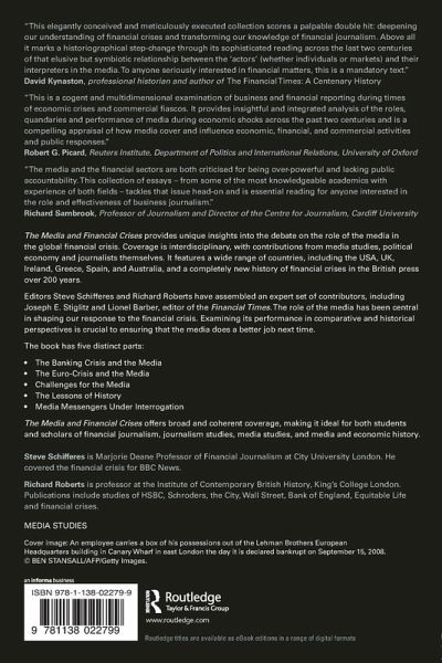 The Media and Financial Crises provides unique insights into the debate on the role of the media in the global financial crisis. Coverage is inter-disciplinary, with contributions from media studies, political economy and journalists themselves. It features a wide range of countries, including the USA, UK, Ireland, Greece, Spain and Australia, and a completely new history of financial crises in the British press over 150 years. Editors Steve Schifferes and Richard Roberts have assembled an expert set of contributors, including Joseph E Stiglitz and Lionel Barber, editor of the Financial Times. The role of the media has been central in shaping our response to the financial crisis. Examining its performance in comparative and historical perspectives is crucial to ensuring that the media does a better job next time. The book has five distinct parts: The Banking Crisis and the Media The Euro-Crisis and the Media Challenges for the Media The Lessons of History Media Messengers Under Interrogation The Media and Financial Crises offers broad and coherent coverage, making it ideal for both students and scholars of financial journalism, journalism studies, media studies, and media and economic history.