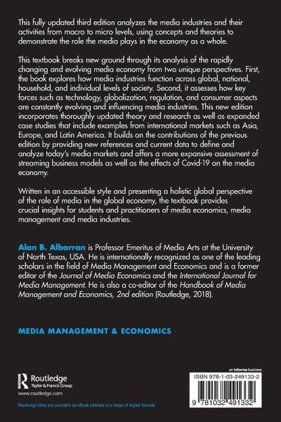 This textbook breaks new ground through its analysis of the rapidly changing and evolving media economy from two unique perspectives. First, the book explores how media industries function across global, national, household, and individual levels of society. Second, it assesses how key forces such as technology, globalization, regulation, and consumer aspects are constantly evolving and influencing media industries. This new edition incorporates thoroughly updated theory and research as well as expanded case studies that include examples from international markets such as Asia, Europe, and Latin America. It builds on the contributions of the previous edition by providing new references and current data to define and analyze today's media markets and offers a more expansive assessment of streaming business models as well as the effects of Covid-19 on the media economy.