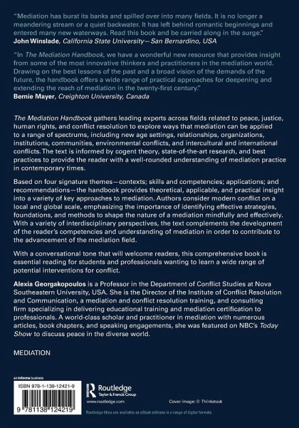 Based on four signature themes-contexts; skills and competencies; applications; and recommendations-the handbook provides theoretical, applicable, and practical insight into a variety of key approaches to mediation. Authors consider modern conflict on a local and global scale, emphasizing the importance of identifying effective strategies, foundations, and methods to shape the nature of a mediation mindfully and effectively. With a variety of interdisciplinary perspectives, the text complements the development of the reader's competencies and understanding of mediation in order to contribute to the advancement of the mediation field.