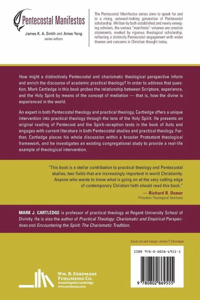 A noteworthy theology of the Holy Spirit that challenges current scholarship in the field How might a distinctively Pentecostal and charismatic theological perspective inform and enrich the discourse of academic practical theology? In order to address that question, Mark Cartledge in this book probes the relationship between Scripture, experience, and the Holy Spirit by means of the concept of mediation — that is, how the divine is experienced in the world. An expert in both Pentecostal theology and practical theology, Cartledge offers a unique intervention into practical theology through the lens of the Holy Spirit. He presents an original reading of Pentecost and the Spirit-reception texts in the book of Acts and engages with current literature in both Pentecostal studies and practical theology. Further, Cartledge places his whole discussion within a broader Protestant theological framework, and he interrogates an existing congregational study to provide a real-life example of theological intervention.