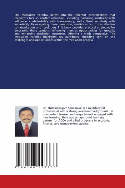 The Mediation Paradox delves into the inherent contradictions that mediators face in conflict resolution, including balancing neutrality with influence, confidentiality with transparency, and cultural sensitivity with impartiality. By navigating these paradoxes, mediators can foster effective communication and resolution. This book provides practical strategies for embracing these tensions, reframing them as opportunities for growth, and enhancing mediation outcomes. Offering a fresh perspective, The Mediation Paradox highlights key paradoxes, shedding light on the challenges and opportunities within the mediation process.