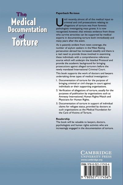 Until recently, almost all of the medical input to criminal and civil prosecutions relating to allegations of torture was from forensic pathologists investigating mass graves. It is now recognised, however, that witness evidence from those who survive atrocities can be supported by medical experts in documenting torture both immediately and many years after the event. As is patently evident from news coverage, the number of asylum seekers in the West fleeing persecution abroad has increased steadily and there is a real need to provide those involved in examining these individuals with a comprehensive reference source which will underpin the Istanbul Protocol and provide the academic background for bringing prosecutions against alleged torturers before the newly mandated International Criminal Court.