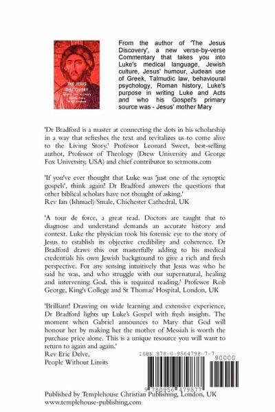 From the author of 'The Jesus Discovery', a new verse-by-verse Commentary that takes you into Luke's medical language, Jewish culture, Jesus' humour, Judean use of Greek, Talmudic law, behavioural psychology, Roman history, Luke's purpose in writing Luke and Acts and who his Gospel's primary source was - Jesus' mother Mary.