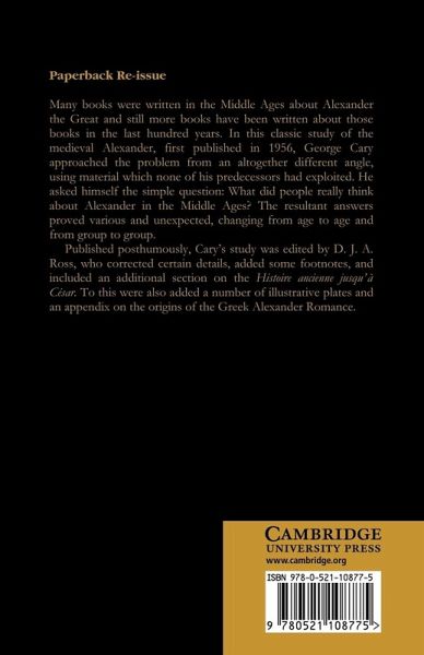 Published posthumously, Cary's study on the perception of Alexander the Great in the Middle Ages, was edited by D. J. A. Ross.