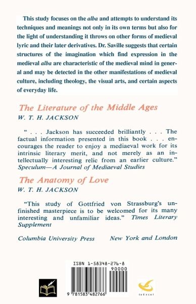 This study focuses on the alba and attempts to understand its techniques and meanings not only in its own terms but also for the light of understanding it throws on other forms of medieval lyric and their later derivatives. Dr. Saville suggests that certain structures of the imagination which find expression in the medieval alba are characteristic of the medieval mind in general and may be detected in the other manifestations of medieval culture, including theology, the visual arts, and certain aspects of everyday life.