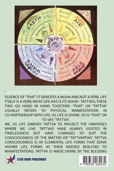 THE WORD TATTVA, IN SANSKRIT, MEANS "THAT-NESS" OR THE ESSENCE OF "THAT." IT DENOTES A NOUN AND NOT A VERB. LIFE ITSELF IS A VERB; WHAT LIFE HAS IS ITS NOUN - TATTVAS: THESE TWO GO HAND IN HAND TOGETHER. "THAT OR TATTVA" USUALLY REFERS TO PHYSICALMANIFESTATION IN CO-PARTNERSHIP WITH LIFE. AS LIFE IS DIVINE, SO IS "THAT' OR. TO SAY - TATTVA. WE, AS LIFE EMBODY TATTVA TO PROJECTTEH UNIVERSES WHERE WE LIVE. TATTVAS HAVE ALWAYS EXISTED IN TIMELESSNESS BUT HAVE CHANGED TO SUIT AND RENEW LIFE'S DEMANDS. SUCH EMBODIED LIFE BECOMES THE CONSCIOUSNESS OF THE MATTER OR TATTVARTHA. TATTVA CONSCIOUSNESS IS OF ELEMENTAL LIFE FORMS TAHT SERVE HIGHER LIFE FORMS AS THEIR NEEDED REALITIES TO MANIFESTATIONS. TATTVA IS MADE DEIVINE BY THE BLESSING OF LORD VISHNU.