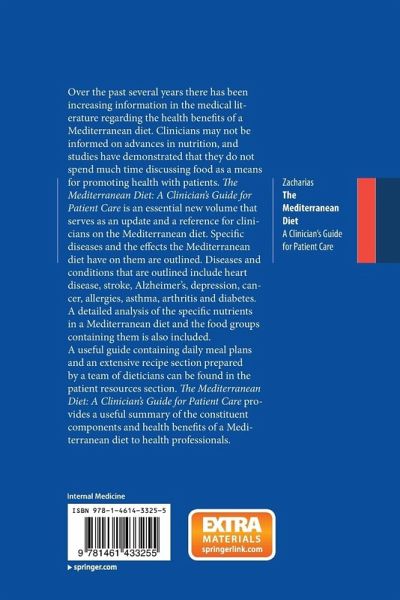 Over the past several years there has been increasing information in the medical literature regarding the health benefits of a Mediterranean diet. Clinicians may not be informed on advances in nutrition, and studies have demonstrated that they do not spend much time discussing food as a means for promoting health with patients. The Mediterranean Diet: A Clinician's Guide for Patient Care is an essential new volume that serves as an update and a reference for clinicians on the Mediterranean diet. Specific diseases and the effects the Mediterranean diet have on them are outlined. Diseases and conditions that are outlined include heart disease, stroke, Alzheimer's, depression, cancer, allergies, asthma, arthritis and diabetes. A detailed analysis of the specific nutrients in a Mediterranean diet and the food groups containing them is also included. A useful guide containing daily meal plans and and an extensive recipe section prepared by a team of dieticians can be found in the patient resources section. The Mediterranean Diet: A Clinician's Guide for Patient Care provides a useful summary of the constituent components and health benefits of a Mediterranean diet to health professionals.