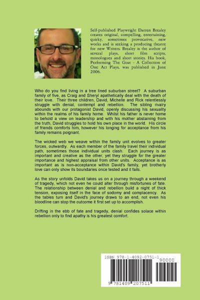 David takes us on a journey through a weekend of tragedy, which not even he could alter through misfortunes of fate. As Craig and Sheryl apathetically deal with the death of their love, their three children, David, Michelle and Rick relentlessly struggle with denial, contempt and rebellion. The sibling rivalry abounds with our protagonist David, openly discussing his sexuality within the realms of his family home. David struggles to hold his own place in the world. His circle of friends comforts him; however his longing for acceptance from his family remains poignant. The wicked web we weave within the family unit; acceptance is as important as is non-acceptance within David's family, yet brotherly love can only show its boundaries once tested and it fails. The relationship between denial and rebellion build a night of thick tension, exposing itself in the face of sodomy and complacency. Not even David's bloodline can stop the outcome it first set up to accomplish.