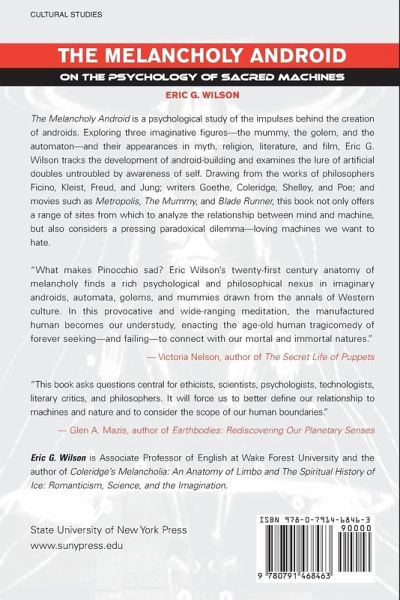 The Melancholy Android is a psychological study of the impulses behind the creation of androids. Exploring three imaginative figures-the mummy, the golem, and the automaton-and their appearances in myth, religion, literature, and film, Eric G. Wilson tracks the development of android-building and examines the lure of artificial doubles untroubled by awareness of self. Drawing from the works of philosophers Ficino, Kleist, Freud, and Jung; writers Goethe, Coleridge, Shelley, and Poe; and movies such as Metropolis, The Mummy, and Blade Runner, this book not only offers a range of sites from which to analyze the relationship between mind and machine, but also considers a pressing paradoxical dilemma-loving machines we want to hate.