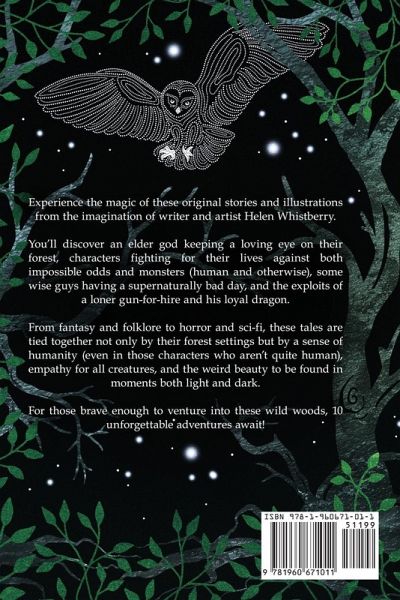 Experience the unforgettable magic of these original stories and illustrations from the imagination of writer and artist Helen Whistberry. You'll discover an elder god keeping a loving eye on their forest, a girl made of glass and other characters fighting for their lives against both impossible odds and monsters (human and otherwise), some wise guys having a supernaturally bad day, and the exploits of a loner gun-for-hire and his loyal dragon. From fantasy and folklore to horror and sci-fi, these tales are tied together not only by their forest settings but by a sense of humanity (even in those characters who aren't quite human), empathy for all creatures, and the weird beauty to be found in moments both light and dark. And be warned! There are dark and sometimes violent themes ahead and not all stories have a happy ending, but for those brave enough to venture into these wild woods, 10 unforgettable experiences await.