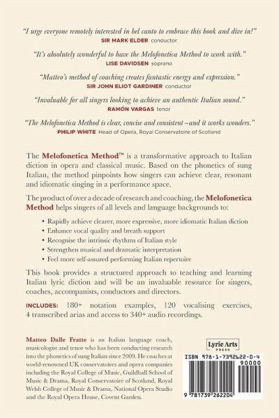 The Melofonetica Method is a transformative approach to Italian diction in opera and classical music. Based on the phonetics of sung Italian, the method pinpoints how singers can achieve clear, resonant and idiomatic singing in a performance space. The product of over a decade of research and coaching, the Melofonetica Method helps singers of all levels and language backgrounds to:Rapidly achieve clearer, more expressive, more idiomatic Italian diction Enhance vocal quality and breath support Recognise the intrinsic rhythms of Italian style Strengthen musical and dramatic interpretation Feel more self-assured performing Italian repertoire This book provides a structured approach to teaching and learning Italian lyric diction and will be an invaluable resource for singers, coaches, accompanists, conductors and directors. It includes: 180+ notation examples, 120 vocalising exercises, 4 transcribed arias, access to 340+ audio recordings and fascinating insight into the evolution of Italian as a language built to be sung.