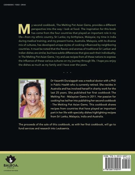 My second cookbook, The Melting Pot Asian Gems, provides a different perspective into the way I look at food. The inspiration for this book has come from the four countries that played an important role in my life-from my ethnic country, Sri Lanka; my birthplace, Malaysia; my time in India during medical training; and my present home, Australia. Malaysia, with its diverse mix of cultures, has developed unique styles of cooking influenced by neighboring countries. It must be noted that the flavors and aromas of traditional Sri Lankan and Indian dishes are similar, but have subtle differences that give each their individuality. In The Melting Pot Asian Gems, I try and use recipes from all these nations to express the influence of these various cultures on my journey through life. I hope you enjoy the dishes as much as my family and I have over the years.