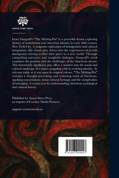 Israel Zangwill's "The Melting-Pot" is a powerful drama exploring themes of assimilation and American identity in early 20th century New York City. A poignant exploration of immigration and cultural integration, this classic play delves into the experiences of Jewish immigrants striving to find their place in a new world. Through compelling narrative and insightful dialogue, Zangwill's work examines the promise and the challenges of the American dream. This historically significant play offers a window into the social and cultural landscape of a nation grappling with its evolving identity. As relevant today as it was upon its original release, "The Melting-Pot" remains a thought-provoking and enduring work of literature, sparking conversations about cultural heritage and the complexities of belonging. A crucial text for understanding American sociological and cultural history. This work has been selected by scholars as being culturally important, and is part of the knowledge base of civilization as we know it. This work is in the public domain in the United States of America, and possibly other nations. Within the United States, you may freely copy and distribute this work, as no entity (individual or corporate) has a copyright on the body of the work. Scholars believe, and we concur, that this work is important enough to be preserved, reproduced, and made generally available to the public. We appreciate your support of the preservation process, and thank you for being an important part of keeping this knowledge alive and relevant.