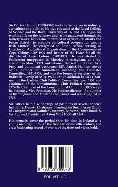 Sir Patrick Hannon's memoirs cover a fascinating period of modern history, from his early days in Ireland right through the first half of the 20th Century. His recollections are reinforced by the many letters he received from all sides of the political and commercial worlds.