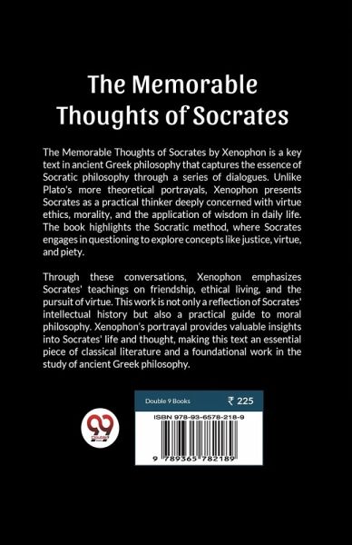 The Memorable Thoughts of Socrates by Xenophon is a key text in ancient Greek philosophy that captures the essence of Socratic philosophy through a series of dialogues. Unlike Plato's more theoretical portrayals, Xenophon presents Socrates as a practical thinker deeply concerned with virtue ethics, morality, and the application of wisdom in daily life. The book highlights the Socratic method, where Socrates engages in questioning to explore concepts like justice, virtue, and piety. Through these conversations, Xenophon emphasizes Socrates' teachings on friendship, ethical living, and the pursuit of virtue. This work is not only a reflection of Socrates' intellectual history but also a practical guide to moral philosophy. Xenophon's portrayal provides valuable insights into Socrates' life and thought, making this text an essential piece of classical literature and a foundational work in the study of ancient Greek philosophy.