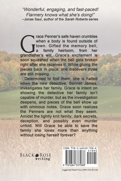 "A naïve small-town girl and a disillusioned big-city cop, drawn together by an unsolved crime that is itself only the tip of the iceberg, The Memory Bell serves up the perfect steamy summer read." -Jenny Jaeckel, author of House of Rougeaux Grace Penner's safe haven crumbles when a body is found outside of town. Gifted the memory bell, a family heirloom, from her grandfather's will, Grace's excitement is soon squashed when the bell gets broken right after she receives it. While gluing the pieces back in place, she discovers three are still missing. Determined to find them, she is halted when the new detective, Bennet James, investigates her family. Grace is intent on showing the detective her family isn't capable of murder, but as the investigation deepens, and pieces of the bell show up with ominous notes, Grace soon realizes the Penners are not what they seem. Amidst the tightly knit family; dark secrets, deception, and possibly even murder unfold. Will Grace be able to save the family she loves more than anything without losing herself forever?