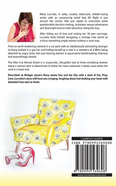 Meet Lucretia. A witty, acutely observant, stiletto-loving writer with an unwavering belief that Mr Right is just around the corner. She just needs to overcome some questionable decision making, lackluster sexual adventures and downright bizarre male behaviour along the way. After falling out of love and ending her 10 year marriage, Lucretia finds herself navigating a strange new world as a thirty-something single woman without a road map. From an earth shattering moment in a car park with an intellectually stimulating stranger to being stalked in a gay bar and finding herself up a tree in a cemetery at 4.30am being attacked by angry birds, this soul-bearing memoir is equal parts heartbreaking, hilarious and astonishingly honest. The Men I've Almost Dated is a voyeuristic, thoughtful and at times mortifying memoir about a woman who's determined to follow her heart wherever it leads, even when the road is a dead end. Described as Bridget Jones's Diary meets Sex and the City with a dash of Eat, Pray, Love, Lucretia's story will have you cringing, laughing aloud and shaking your head with disbelief from start to finish.