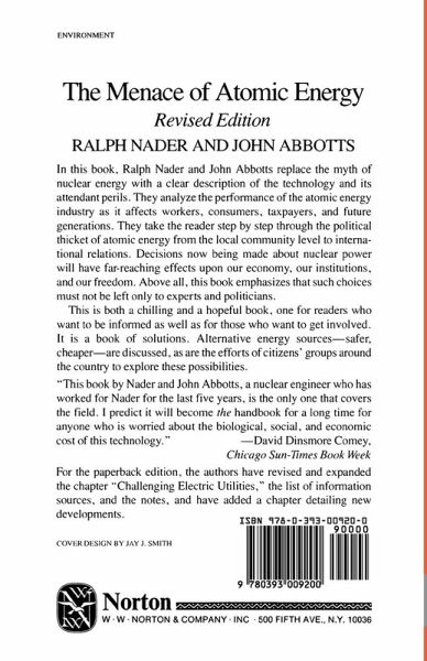 In this book, Ralph Nader and John Abbotts replace the myth of nuclear energy with a clear description of the technology and its attendant perils. They analyze the performance of the atomic energy industry as it affects workers, consumers, taxpayers, and future generations. They take the reader step by step through the political thicket of atomic energy from the local community level to international relations. Decisions now being made about nuclear power will have far-reaching effects upon our economy, our institutions, and our freedom. Above all, this book emphasizes that such choices must not be left only to experts and politicians. This is both a chilling and a hopeful book, one for readers who want to be informed as well as for those who want to get involved. It is a book of solutions. Alternative energy sources-safer, cheaper-are discussed, as are the efforts of citizens' groups around the country to explore these possibilities. For the paperback edition, the authors have revised and expanded the chapter "Challenging Electric Utilities," the list of information sources, and the notes, and have added a chapter detailing new developments.