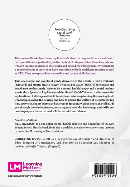 This accessible and practical guide de-mystifies the Mental Health Tribunal for health and social care professionals. Written by a mental health lawyer and a MHT Panel member, it offers essential explanations of all stages of the MHT proceedings, from initial application to the final decision. The book also provides answers to frequently asked questions and provides top tips to help guide through the whole process.
