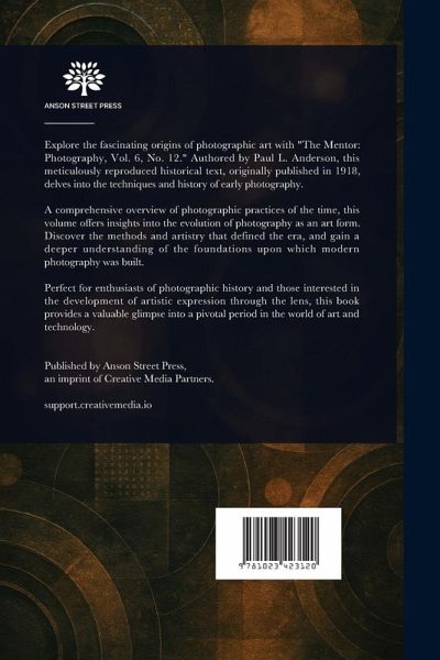 Explore the fascinating origins of photographic art with "The Mentor: Photography, Vol. 6, No. 12." Authored by Paul L. Anderson, this meticulously reproduced historical text, originally published in 1918, delves into the techniques and history of early photography. A comprehensive overview of photographic practices of the time, this volume offers insights into the evolution of photography as an art form. Discover the methods and artistry that defined the era, and gain a deeper understanding of the foundations upon which modern photography was built. Perfect for enthusiasts of photographic history and those interested in the development of artistic expression through the lens, this book provides a valuable glimpse into a pivotal period in the world of art and technology. This work has been selected by scholars as being culturally important, and is part of the knowledge base of civilization as we know it. This work is in the public domain in the United States of America, and possibly other nations. Within the United States, you may freely copy and distribute this work, as no entity (individual or corporate) has a copyright on the body of the work. Scholars believe, and we concur, that this work is important enough to be preserved, reproduced, and made generally available to the public. We appreciate your support of the preservation process, and thank you for being an important part of keeping this knowledge alive and relevant.