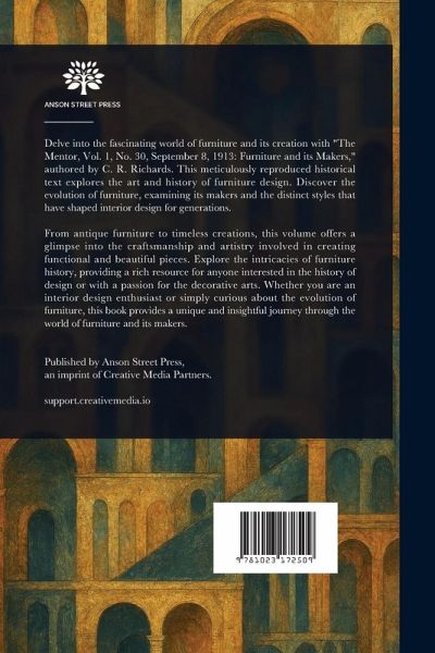 Delve into the fascinating world of furniture and its creation with "The Mentor, Vol. 1, No. 30, September 8, 1913: Furniture and its Makers," authored by C. R. Richards. This meticulously reproduced historical text explores the art and history of furniture design. Discover the evolution of furniture, examining its makers and the distinct styles that have shaped interior design for generations. From antique furniture to timeless creations, this volume offers a glimpse into the craftsmanship and artistry involved in creating functional and beautiful pieces. Explore the intricacies of furniture history, providing a rich resource for anyone interested in the history of design or with a passion for the decorative arts. Whether you are an interior design enthusiast or simply curious about the evolution of furniture, this book provides a unique and insightful journey through the world of furniture and its makers. This work has been selected by scholars as being culturally important, and is part of the knowledge base of civilization as we know it. This work is in the public domain in the United States of America, and possibly other nations. Within the United States, you may freely copy and distribute this work, as no entity (individual or corporate) has a copyright on the body of the work. Scholars believe, and we concur, that this work is important enough to be preserved, reproduced, and made generally available to the public. We appreciate your support of the preservation process, and thank you for being an important part of keeping this knowledge alive and relevant.