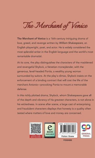 'The Merchant of Venice' is a 16th-century intriguing drama of love, greed, and revenge written by William Shakespeare, an English playwright, poet, and actor. He is widely considered the most splendid writer in the English language and the world's most remarkable dramatist. At its core, the play distinguishes the characters of the maddened and revengeful Shylock, a Venetian moneylender, with the generous, level-headed Portia, a wealthy young woman surrounded by suitors. At the play's climax, Shylock insists on the enforcement of a binding contract that will cost the life of the merchant Antonio-provoking Portia to mount a memorable defense. In this richly plotted drama, Shylock, whom Shakespeare gave all of the depth and vibrancy of his greatest characters, is not alone in his wickedness. In scene after scene, a large cast of enterprising and fraudulent characters displays that honesty is a quality often tested where matters of love and money are concerned. Top 10 Hardcover Library Books: A Wrinkle in Time (9789389440188) How to Stop Worrying and Start Living (9789387669161) Their Eyes Were Watching God (9789389440577) The Magic of Believing (9789388118217) Zen in the Art of Archery (9789354990298) A Cloud by Day, a Fire by Night (9789391181611) Siddhartha by Hermann hesse (9789387669116) The Richest Man in Babylon (9789354990717) The Book of Five Rings (9789389440553) The Knowledge of the Holy (9789389157239) Note: Search by ISBN