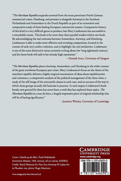 The Merchant Republics analyzes the ways in which three major economic powerhouses - Amsterdam, Antwerp and Hamburg - developed dual identities as 'communities of commerce' and as republics over the course of the long eighteenth century (c.1648-1790). In addition to discussing the qualities that made these three cities alike, this volume also considers the very real differences that derived from their dissimilar histories, political structures, economic fates and cultural expectations. While all valued both their republicanism and their merchant identities, each presented a different face to the world and each made the transition from an early modern republic to a modern city in a different manner.