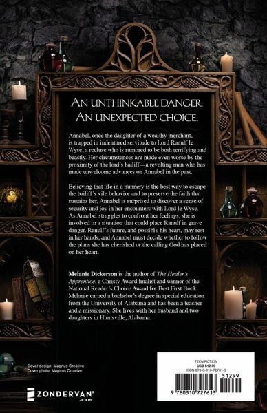 In author Melanie Dickerson's latest fairy-tale retelling, loosely based on Beauty and the Beast, Annabel Chapman is forced to work as an indentured servant at Lord Ranulf's manor house. The new lord is said to be beastly in appearance and temperament, but Annabel's greater fear is Bailiff Tom, who has made unwelcome advances upon her in the past. As she works closely with Ranulf, Annabel begins to feel safe and protected, but will she realize the calling of her heart before it's too late?