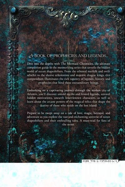 A book of prophecies and legends... Dive into the depths with The Mermaid Chronicles, the ultimate companion guide to the mesmerizing series that unveils the hidden world of ocean shapeshifters. From the ethereal merfolk and swift selachii to the elusive eelusionists and majestic dragon kings, this compendium illuminates the rich tapestry of legends, history, and prophecies that bind these extraordinary beings. Embarking on a captivating journey through the sunken city of Atlantis, you'll discover untold myths and hinted legends, unravel hidden motivations, unearth lesser-known characters, as well as learn about the arcane powers of the magical relics that shape the destiny of those who reside on the lost island. Prepare to be swept away on a tide of love, magic, betrayal, and adventure as you explore the vast and enchanting universe of ocean shapeshifters and their enthralling tales. A must-read for fans of the series.