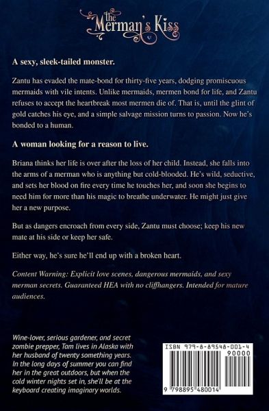 A sexy, sleek-tailed monster. Zantu has evaded the mate-bond for thirty-five years, dodging promiscuous mermaids with vile intents. Unlike mermaids, mermen bond for life, and Zantu refuses to accept the heartbreak most mermen die of. That is, until the glint of gold catches his eye, and a simple salvage mission turns to passion. Now he's bonded to a human. A woman looking for a reason to live. Briana thinks her life is over after the loss of her child. Instead, she falls into the arms of a merman who is anything but cold-blooded. He's wild, seductive, and sets her blood on fire every time he touches her, and soon she begins to need him for more than his magic to breathe underwater. He might just give her a new purpose. But as dangers encroach from every side, Zantu must choose; keep his new mate at his side or keep her safe. Either way, he's sure he'll end up with a broken heart. Reader Promise: Steamy love scenes, dangerous mermaids, and sexy merman secrets. Guaranteed HEA with no cliffhangers. Intended for mature audiences.